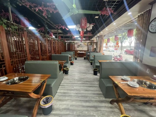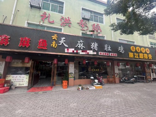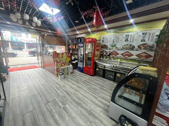 2 地理位置很好处于主干道,在本地属于比较大的餐饮店,周边居民区环绕还有工厂,旁边可停车,人流量很大,很有发展空间。