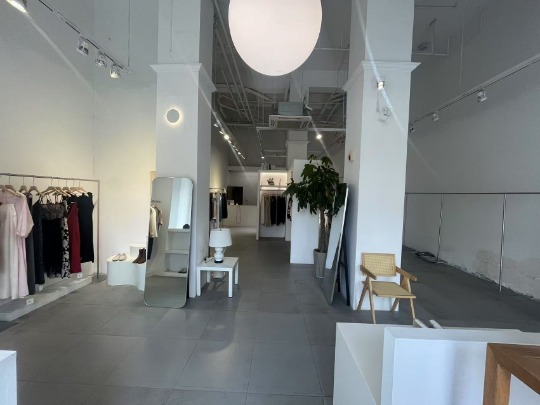 1 临街服装店急转,面积约131平方可做分层,房租5000/月,转让包括店内所有设备装修,诚心有意者请到店详谈。