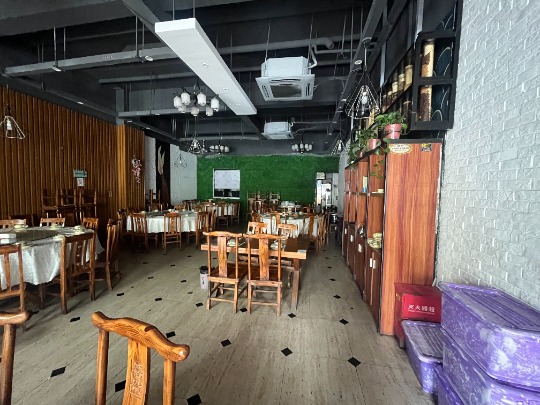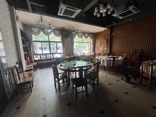 1 临街餐饮急转,面积约570平方上下两层楼上包厢,房租20000/月,转让包括店内所有设备装修,诚心有意者请到店详谈。